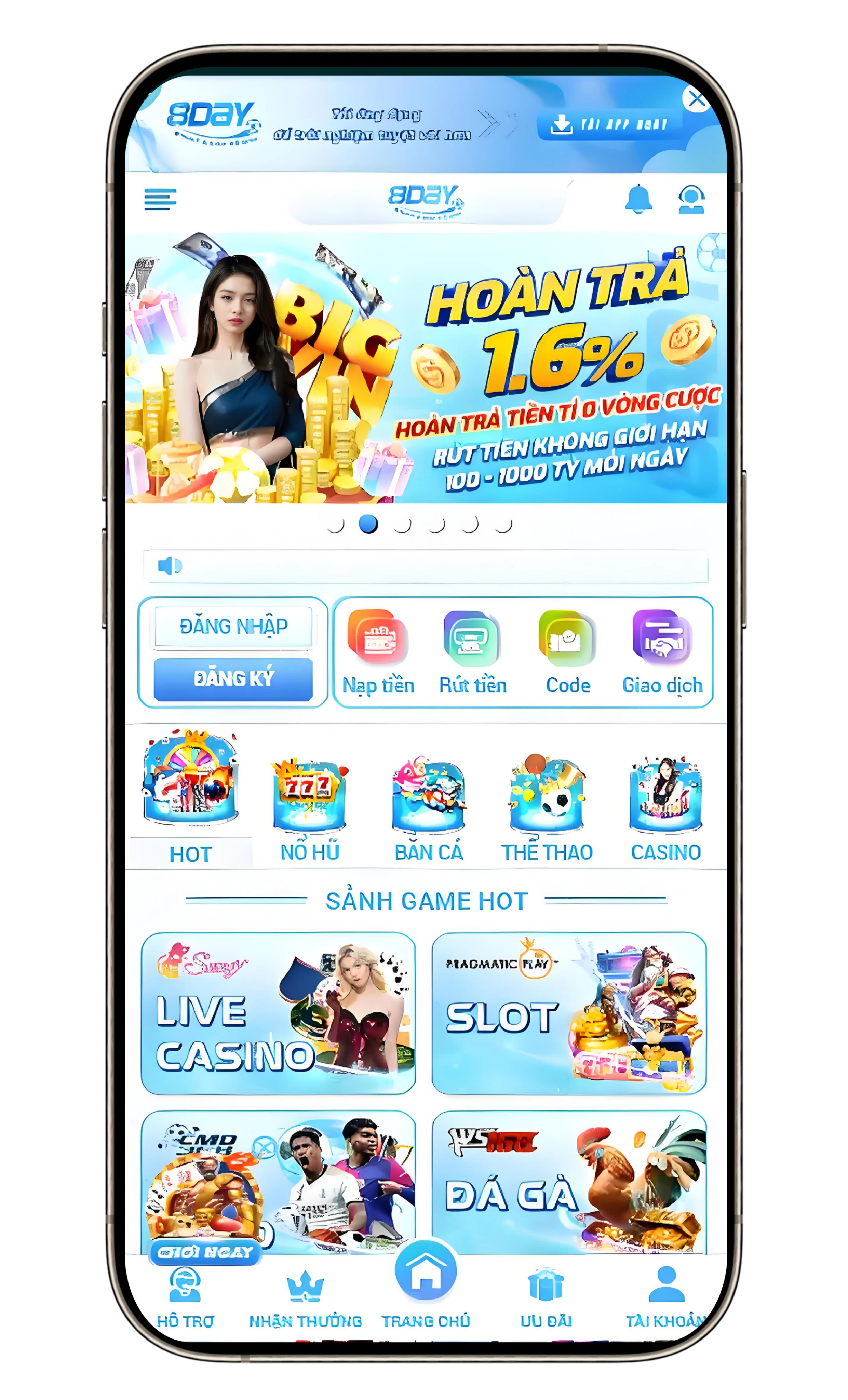 Nhà cái hoạt động 24/7, nên ở bất kỳ thời điểm nào bạn cũng có thể nạp tiền vào tài khoản để tham gia cá cược. Thời gian kể từ khi người chơi thực hiện giao dịch gửi tiền đến khi tiền được cập nhật vào tài khoản chỉ mất từ 3 đến 10 phút. Nếu quá trình nạp tiền 8Day lâu hơn 10 phút, bạn hãy liên hệ ngay với bộ phận chăm sóc khách hàng của nhà cái để được hỗ trợ kịp thời nhé.